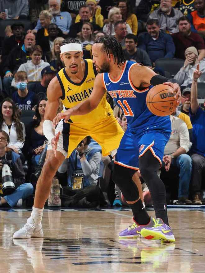 尼克斯上一场124-113战胜马刺,夺得队史首座NBA杯冠军,步行者过去两场连输76人与奇才遭遇2连败。本场步行者缺少哈利伯顿、内史密斯与谢泼德,尼克斯缺少唐斯、哈特、沙梅特、麦克布莱德。首节开局尼克斯6-7落后,步行者逐步攻防碾压尼克斯,打出一波21-6攻势压制,尼克斯已经12-28落后16分差距。尼克斯回敬一波13-8攻势追分,首节结束尼克斯25-36落后步行者。布伦森9中4得到10+3+2,内姆哈德5中4得到10分。